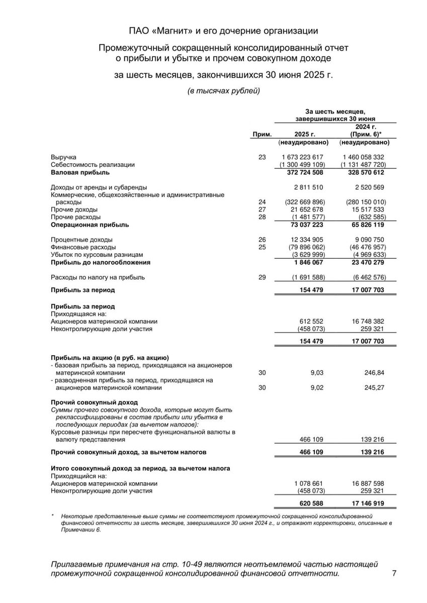 🍏 «Магнит» отчитался за 6 месяцев этого года: выручка выросла, прибыль — упала