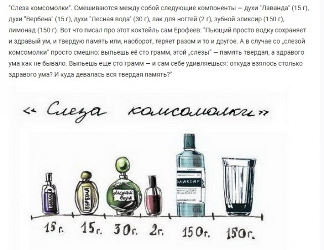 Есть коктейли, что подают в бокалах с зонтиками, а есть — в стаканах гранёных 🥛 с трагедией. «Слеза комсомолки», авторства великого пьянофила Венедикта Ерофеева, принадлежит к последним: пьёшь — и чувствуешь, как внутри сгорают не только рецепторы, но и иллюзии. Почему именно слеза? Потому что советская комсомолка могла плакать лишь по двум поводам: от переполненной любви к Родине и от дешёвого, но смертоносного спирта. Ерофеев дипломатично совместил оба. Согласно "писанию" «Москва-Петушки», ингредиенты таковы: лак для ногтей «Кря-Кря», очиститель для стёкол «Мистер Мускул» и немножко одеколона «Шипр» — для букета воспоминаний о субботниках. Случайный эстет вскрикнет: «Это же несъедобно!» — но Веничка подмигивает: «Зато честно». Венедикт превращает бытовую химию в философское топливо: проглатываешь «слезу» — и сразу веришь, что до Петушков рукой подать, а до светлого будущего — одной пересадкой. Алхимик эпохи, он смешал несовместимые жидкости, чтобы показать: идея величия страны и реа