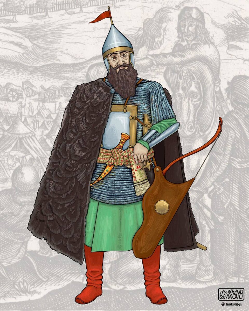 Къумукъ таварих Шемхал явился с двумя своими братьями в сопровождении 50 вооруженных всадников. Это был человек 36 лет, жирный, крепкий и осанистый, с рыжеватой бородой. Он явился в шелковом кафтане из зеленого дараи с броней, над которой был надет мохнатый черный войлочный плащ; у него были сабля, лук и стрелы, как и у всех других. (Адам Олеарий) Наибольшим желанием падишаха Дагестана было показать свое войско нашему хану. А он и на самом деле имел в своем распоряжении воинов отборных, преданных, и латах или в кольчугах, и все это были всадники на чистокровных арабских конях. (Эвлия Челеби)