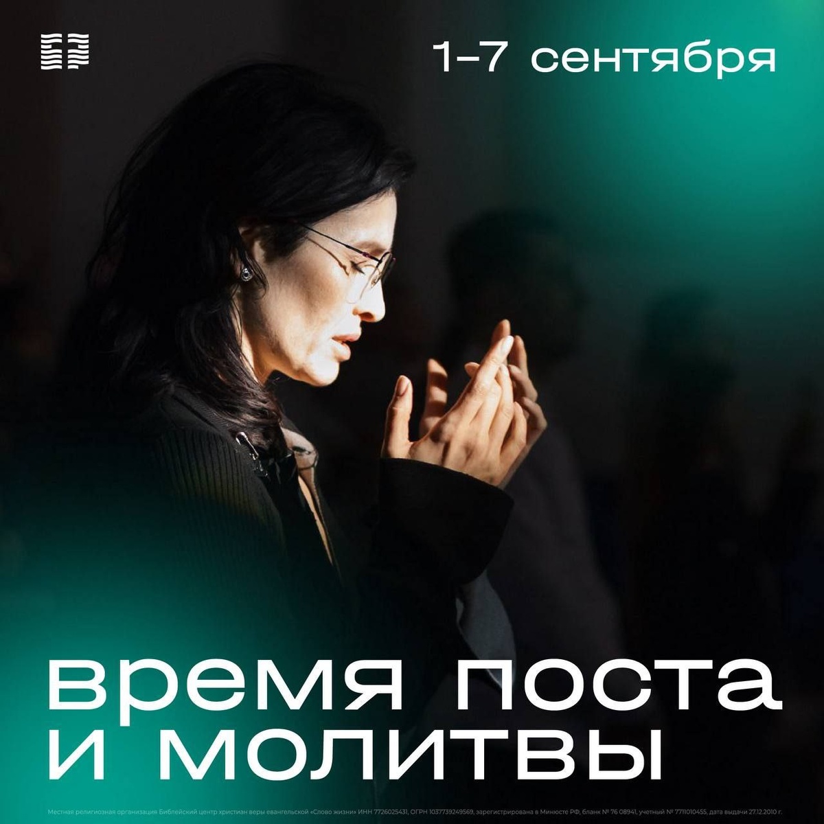 В начале прошлого года Бог дал нам слово об открытых дверях. Весь этот сезон мы фокусируемся на доступных возможностях и миссионерских полях, созревших для жатвы. И мы так ясно видим, как Господь ведет Свою работу в Москве, других городах и странах. После летнего отдыха пришло время сделать паузу и задуматься: какие цели были у нас в начале года, а какие мечты мы оставили на потом? 🟢1–7 сентября нас ждет время поста и молитвы, когда мы будем всей церковью готовиться к новому сезону и просить Бога об открытых дверях в наших жизнях и служении 🕊️ Вы можете самостоятельно решить, какой вид поста больше подойдет именно вам и сколько дней его придерживаться. Но вдохновляем вас в это время уделить особое внимание личным отношениям с Богом. Приглашаем вас на ежедневные молитвенные служения в церковь «Слово жизни». ➡️ Подробное расписание есть на сайте: https://wolrus.org/events/prayer