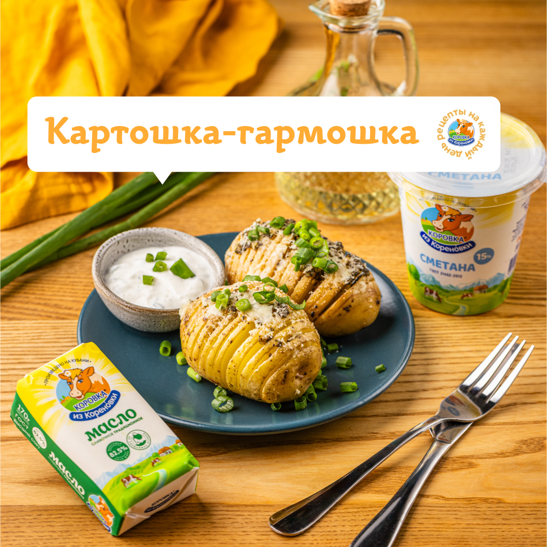 Секрет в том, что масло «Коровка из Кореновки» пропитывает каждый разрез картошки-гармошки, делая её невероятно сочной и аппетитной. А если добавить ещё и сметанку… ммм, устоять просто невозможно! Что понадобится для приготовления: