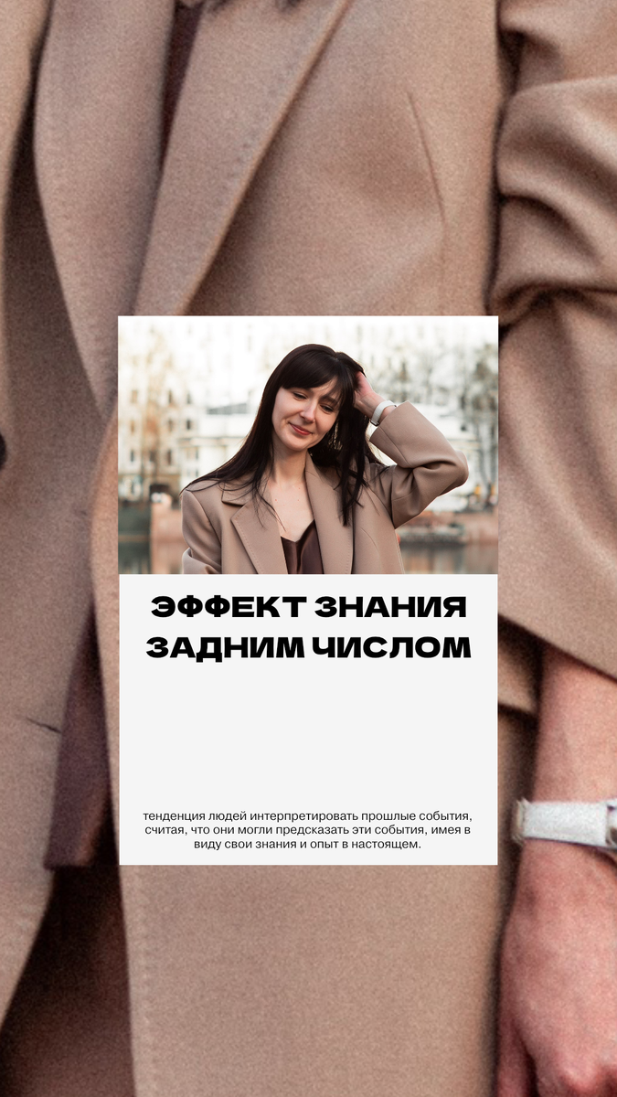 Для твоей психики важно допускать, что наша жизнь состоит не только из точно спрогнозированных событий, но и других факторов, которые от тебя не зависят. Мысли «я знала, что все так и будет», «я должна была понять, что все так будет» лишь загоняют тебя в ловушку мышления, заставляют чувствовать вину и депрессию. Подробнее о когнитивных ошибках и психологии человека 🧠 рассказываю в своем аккаунте @tatiana_zubkova