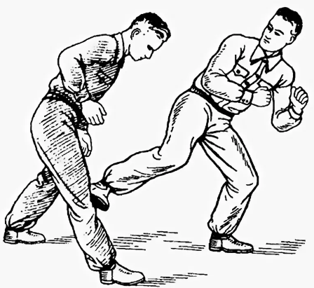 - Внезапность: Атаки по ногам часто недооцениваются и не ожидаются нападающим, особенно в бытовом конфликте.