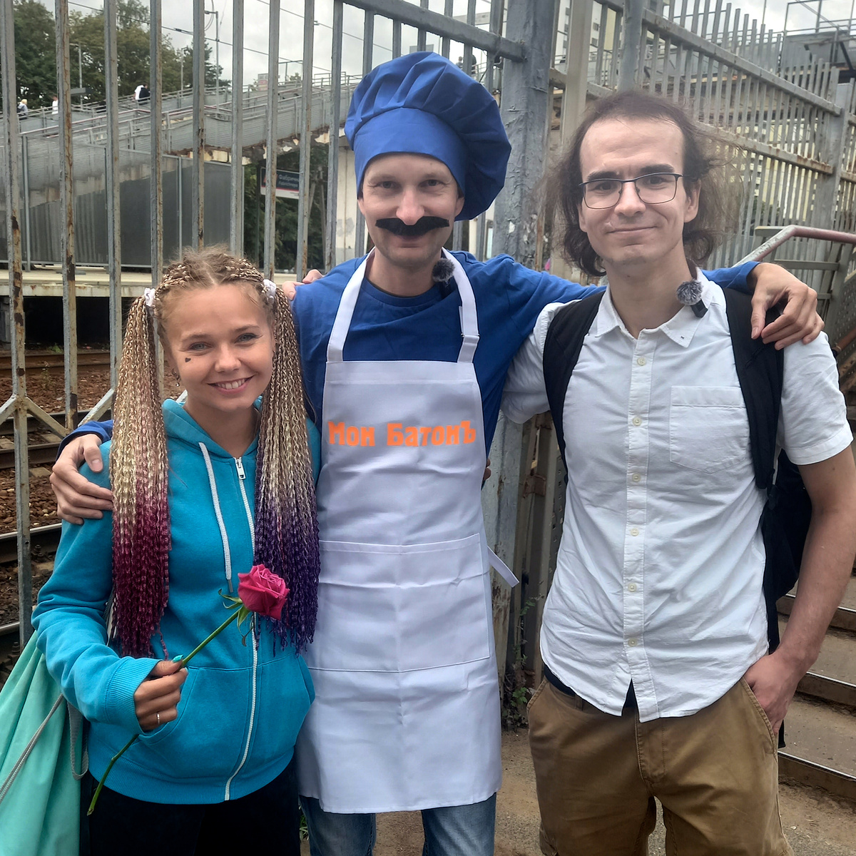 На фото рядом со мною профессиональный актёр кино, театра и телевидения Алексей Шаранин и актёр театральной студии “Дети Мельпомены Анны Бархатовой”, лауреат ряда театральных конкурсов среди которых “Заметьте!”, ФЛИНТ#ТРАМПЛИН и “Рыжий клоун”, композитор и сэмплмейкер Вадим Какошкин. В образах, снимают ролик для соцсетей и рекламных публикаций раменской пиццерии-пекарни “Мон БатонЪ”.