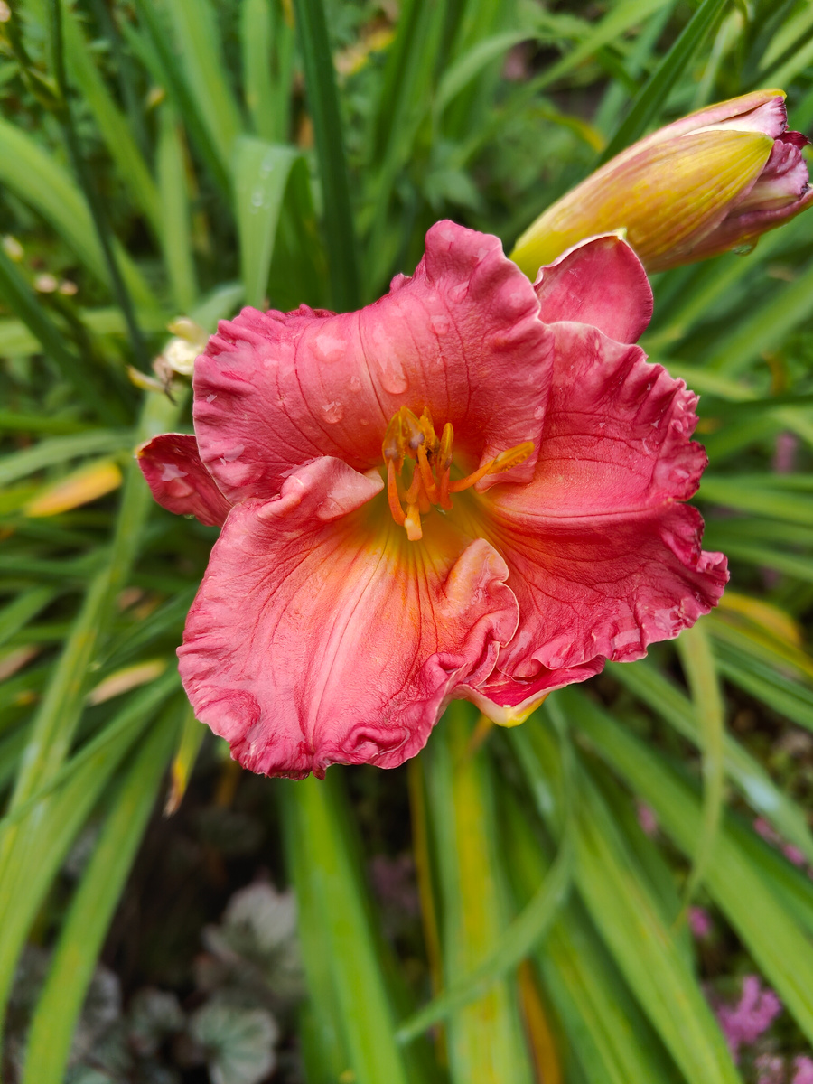 Самый распространённый цвет конца лета - жёлтый. Цветут рудбекии, гелениумы, хризантемы. Но в моём саду, как ни странно, даже в конце лета основным цветом остаётся розовый. Жёлтое, конечно, тоже присутствует, но точечно. Несмотря на конец августа, продолжается цветение некоторых лилейников. Последние цветки распускаются на моём самом любимом безымянном сорте. Самому позднему сорту, Файнел Тач, не хватает сил раскрыть свои цветки полностью. Скорее всего, сказываются холодные ночи и нехватка солнца. Каждый день ловлю новые цветки, надеясь, что они раскроются, как положено. Но нет, все цветки замирают в полуроспуске. Август - время очитков. Очиток Эверса разлёгся, как никогда, задавил бедняжку лобелию. Новенький Строберри энд Крим потихоньку отцветает. У него тёмные листья и необычная окраска соцветий. Каждый маленький цветочек-звездочка дважды меняет свой цвет: из розового бутона появляется белый цветок, который постепенно темнеет до темно-розового. Смотрится необычно. Очиток обыкновенн