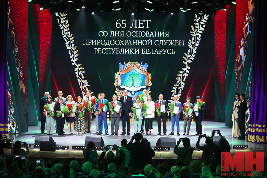 Торжественное мероприятие, посвященное 65-летию образования природоохранной службы Беларуси, прошло в Минском городском дворце культуры 29 августа, передает корреспондент агентства «Минск-Новости». Заместитель премьер-министра Республики Беларусь Юрий Шулейко зачитал приветственный адрес Президента Беларуси Александра Лукашенко: «Эта солидная дата является не просто вехой истории, а символом преемственности нескольких поколений, посвятивших себя приумножению бесценного богатства страны — ее природных ресурсов. Министерство не только сформировало эффективную систему охраны природы, но и добилось международного признания белорусской модели природопользования. Нам есть чем гордиться. Леса занимают более 40 % территории, чистые реки и озера, уникальные болота, неповторимый ландшафт — наше национальное достояние, которое требует ежедневной заботы и профессионального подхода», — говорится в поздравлении. Ю. Шулейко вручил лучшим работникам отрасли награды Совета Министров Республики Беларусь