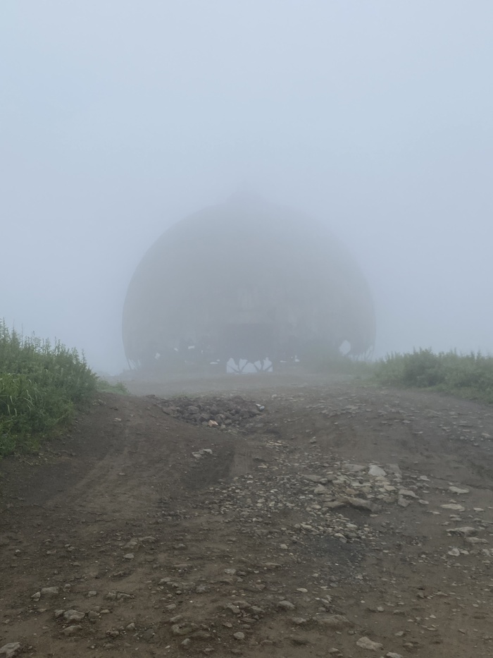 Постапокалиптикая фигура, расположенная рядом с кладбищем. Самое древнее кладбище, находится недалеко от крематория. Что первое удивляет-люди неспешно прогуливаются по территории кладбища, общаются, дети играют. Очень странно… Дальше уже ближе к куполу - новое кладбище с новыми могилами. Проходя мимо скорбящих людей и экскаватора, который долбит и роет скальный грунт для новой могилы, мы задались вопросом, а туда ли мы идем, но навигатор диктовал нам маршрут и тут мы видим это. Очень необычное место, туман создал свой шарм, хоть без тумана удалось бы посмотреть живописные панорамные виды. Фотки получились уникальными. Вокруг купола - заросли травы, камни, гулять особо негде, учитывая, что рядом кладбище. Но просто оцените эту постройку Подписаться на Пикабу Познавательный. и Пикабу: Истории из жизни.
