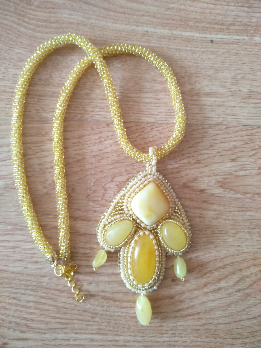 Жгут из бисера я часто использую при создании украшений, чаще всего как шнурок для кулона, выполненного также из бисера. Например, как на фото ниже. В этом мастер-классе покажу как сплести жгут из бисера на 5 бисерин. На самом деле, в представленном мною ниже варианте плетения может быть любое нечетное количество бисерин в основе начиная с 3-х -5,7,9 и т.д. Итак, я буду использовать чешский бисер, размер 10 и синтетитическую нить. Также нам потребуется фурнитура: 2 концевика, 2 соединительных кольца, карабин и удлиняющая цепочка. Начинаем плетение. Нанизываем 5 бисерин, завязываем нить в кольцо, оставляя кусок свободной нить примерно 20 см. Это получился первый ряд - основа. Начинаем плести второй ряд. Проходим иголкой в первую бисерину. Нанизываем одну бисерину и проходим через одну бисерину в основе, двигаясь по часовой стрелке. Далее делаеем тоже самое- нанизываем одну бисеринку и проходим через одну в основе. А вот следующую (на фото ниже я обозначила ее цифрой 8) бисерину заводим