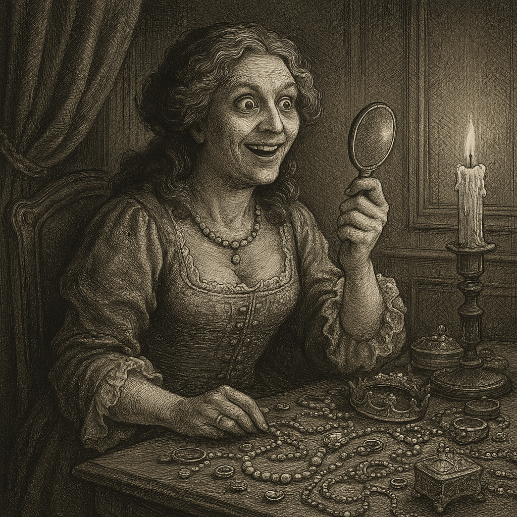 И после этого не прошло и полугода, как стала появляться на улице и его супруга – а то всё стеснялась. Потому что весила в свои пятьдесят лет добрых восемь пудов. А уж какие страшные морщины и бородавки имелись на её лице! Об этом всем рассказывал лекарь, регулярно навещавший старую Аспазию, и пользовавший её, в-основном – пуская кровь. Да и слуги не молчали.