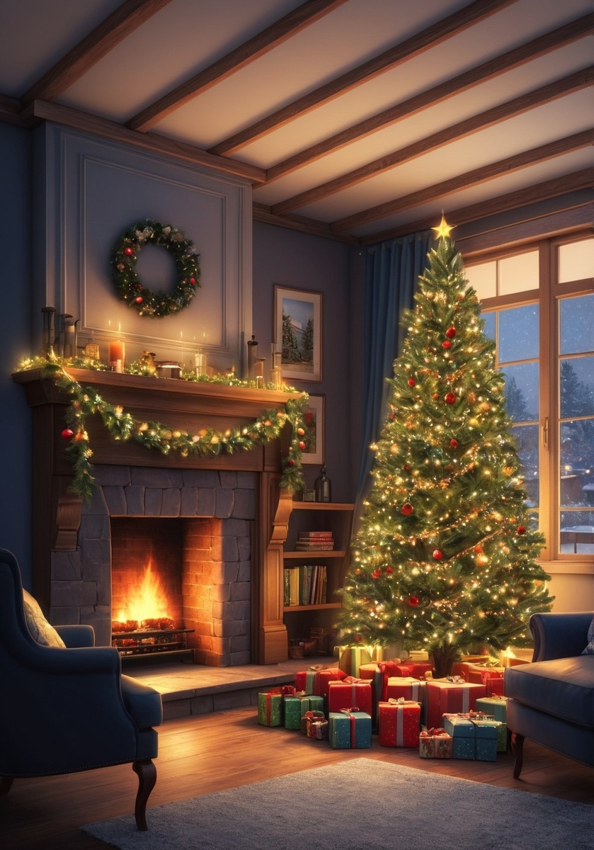 Рождественская елка у камина. Нейросеть: Leonardo. Preset: Flux. #цифроваяживопись #нейросеть #фентези #нейроарт #арт #идеи #цифровоефото #ai #рисунок #нейрофото #артыотнейросетей #DigitalDreamscapes #иллюстрация #елка #новогоднее #рождество #leonardo #камин #aiartwork #digitalart #fantasyart #flux