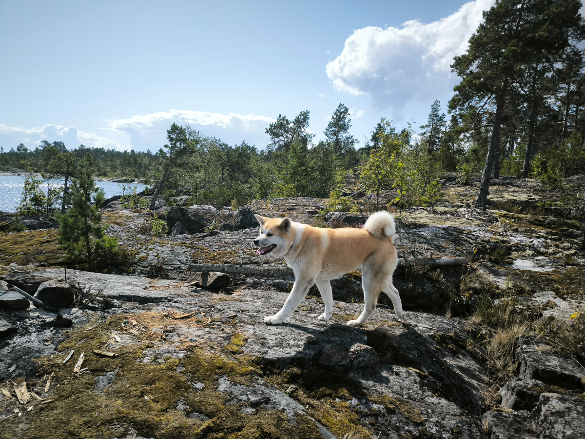 Походница К поездкам и походам наша собачка привыкшая. Главное, перед поездкой на машине ее не кормить. А то всякое бывало. Случалось, что и укачивало. Особенно в первую поездку. Ей было полгода отроду, и молодой организм тяжело переносил тяготы дороги. Но время шло, девочка наша подрастала, крепчала. И сейчас ее уже ни чем не испугать. Не сказать, что путешествия в машине ей нравятся, но оставаться одной еще печальнее. Поэтому с тоской во взоре она лезет на свое место. Но еще больше она не любит катамаран. Мы каждый год отправляемся в плавание на надувном парусном катамаране бороздить шхеры Ладожского озера. В автомобиле хотя бы пол твердый под ногами. Там же под лапами зыбко и не надежно. приходится ее уговаривать и чуть ли не затаскивать во внутрь. Внутри каюты она уже старается поскорее улечься, но переживания вынуждают часто подпрыгивать и осматривать окружающую действительность. При этом на борту размером 2*2м нас семь человек. В таких стесненных условиях стоячая собака мешается