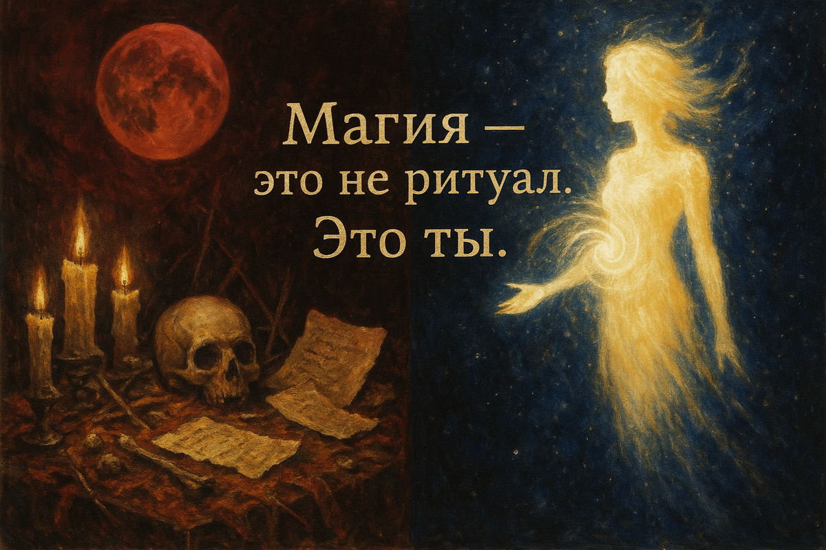данная статья является личным мнением автора Честно? Меня всегда немного передёргивало от слов «магия — это ритуалы», «магия — это дар», «магия — это когда бабка шепчет над фоткой». Дорогая, магия — это не ритуал на убывающую луну с подсолнухом и банкой мочи. И даже не свеча, подожжённая строго в 00:44 под завывания пса и директный Сатурн. Магия — это то, насколько ты честна с собой, насколько ты способна слышать, видеть и признавать. Это состояние ума, души, энергии и твоей ментальной матрицы. Это не то, что ты делаешь — это то, как ты думаешь, как ты чувствуешь и из какого места ты творишь свою реальность. В матрице нам навязали спектакль. Вот ведьма. Вот кладбище. Вот шепоток. Вот бог, которому надо подать тринадцать монет, чтобы «оно сработало». И если ничего не сработало — значит, подала не с той руки. Нас научили, что магия — это форма. Атрибуты. Атмосфера. Обряды. А я скажу иначе: это — выпердыш матрицы. Это суррогат. И если тебе не нравится это слово — оно тебе и не должно нра