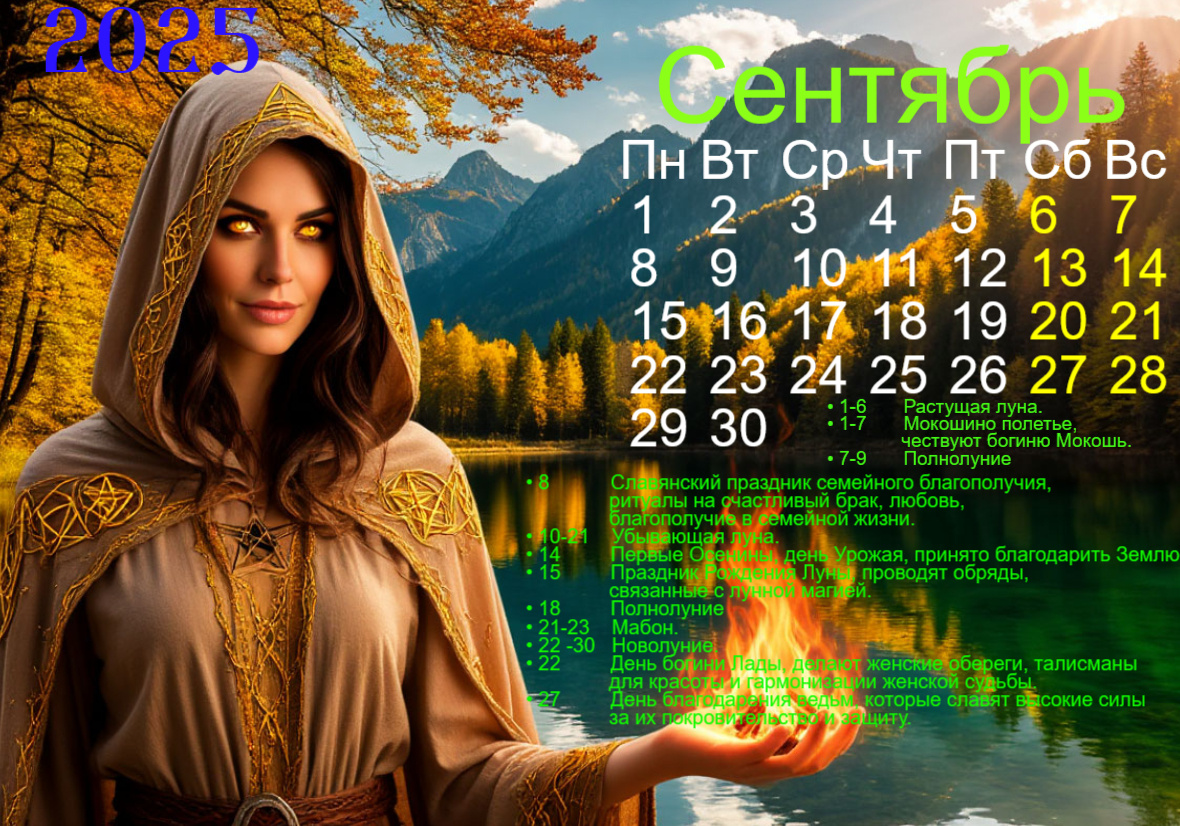 Всем здравия! Решила сделать календарь-шпаргалку на сентябрь. Указаны даты фаз луны, рекомендации к эзотерическим/магическим работам. В следующий раз, если будет интересно, то в дальнейших календарях выделю текст, чтобы лучше было читать. Всех вам благ!