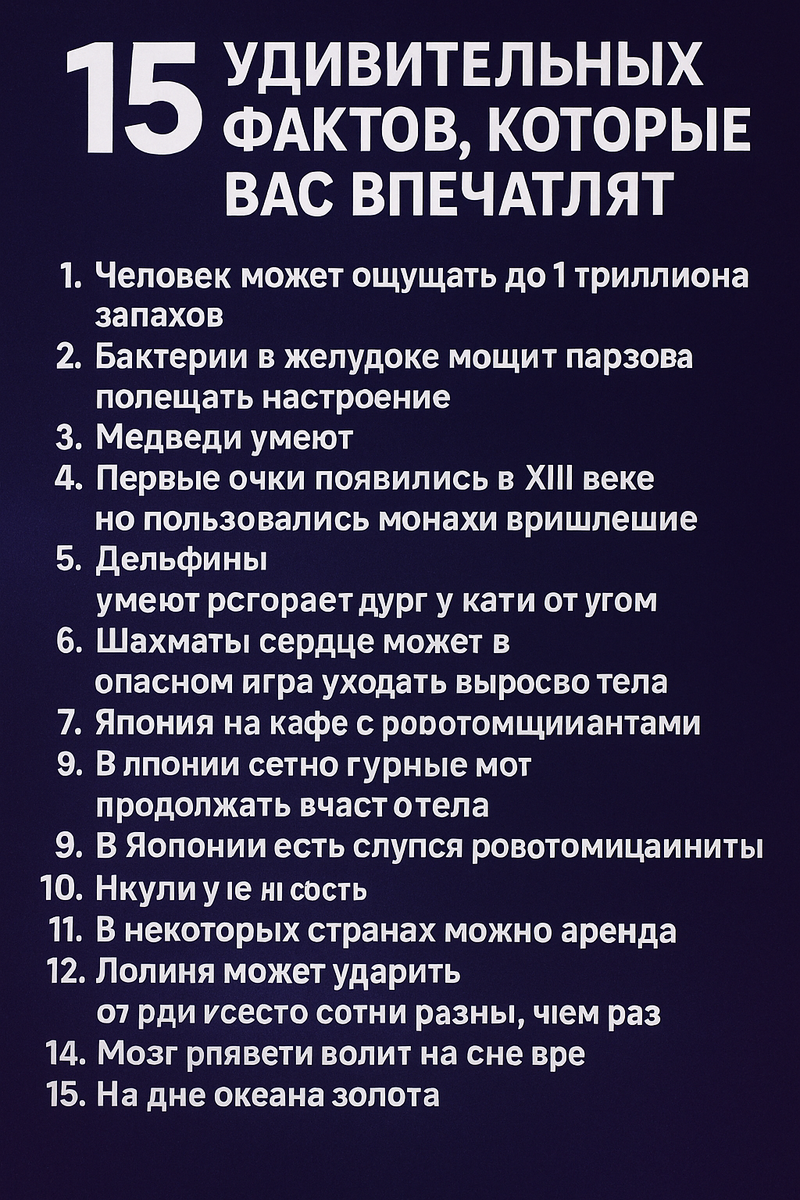 ✨ Друзья, вы снова на нашей странице! Сегодня у нас новая подборка фактов, которая удивит даже самых искушённых читателей. Мы собрали редкие и необычные истории, которые могут изменить ваше представление о мире. Читайте внимательно — и обязательно делитесь в комментариях, какой факт зацепил именно вас!