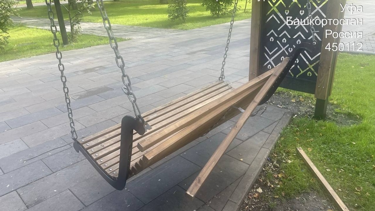 Элементы на скамейке-качелях в сквере «Матерей» повредили неизвестные вандалы, сообщил в своих соцсетях глава Калининского района Газизьян Ахмедьянов.
