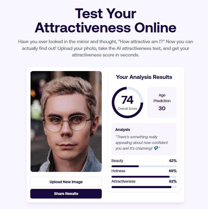 Проверяем свою ПРИВЛЕКАТЕЛЬНОСТЬ с помощью нейронки — How Attractive am I оценит вашу внешку по 100-бальной шкале. Все, что нужно, загрузить свое фото — нейронка выделит ваши самые выразительные черты лица и опишет, почему поставила такую оценку. Ссылка Telegram: @Age_of_it