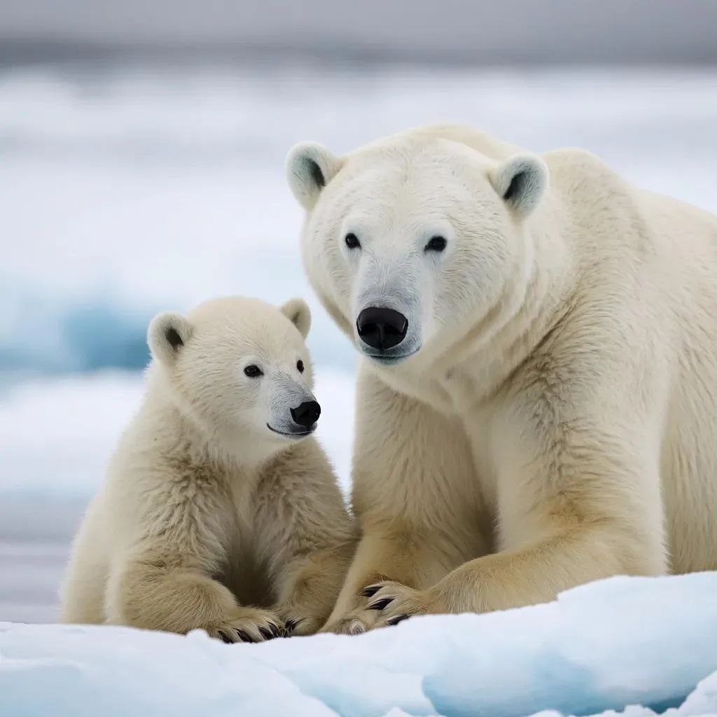 Каждую осень белые медведицы готовятся к появлению потомства. Они находят уютное место среди снегов и льда, где строят свою "родильную берлогу". Здесь, в тепле и безопасности, в ноябре или декабре рождаются маленькие медвежата. Эти крохи слепы и слабы, полностью полагаясь на заботливую мать, которая кормит их своим богатым витаминами молоком. Около четырёх месяцев семья живет вместе в тесноте и теплоте берлоги, постепенно укрепляя здоровье детёнышей. Однако наступает весна, и медведица выводит своё семейство наружу. Малыши впервые видят мир, учатся ходить и играть, осваивая первые шаги в жизни вне дома. Мама-медведица учит их основным навыкам охоты и выживания, необходимым для взрослой жизни. Этот период продолжается около двух-трех лет, пока молодые особи не станут достаточно сильными и самостоятельными, чтобы отправиться в собственное путешествие по бескрайним просторам Арктики.