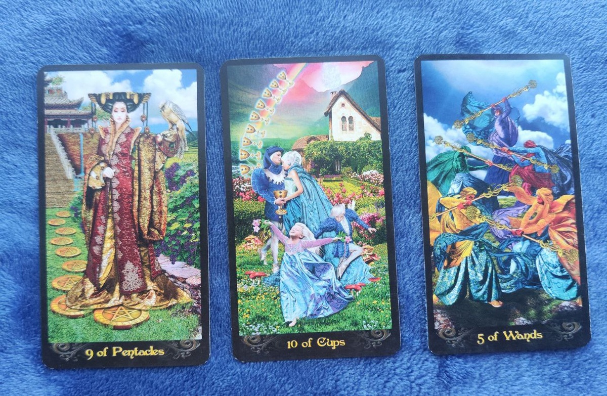 Карты дня: Девятка Пентаклей, Десятка Кубков, Пятёрка Жезлов