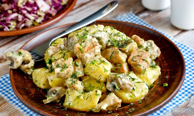 Сначала соберите все необходимые ингредиенты: мясо (лучше всего свинину), картофель, грибы (например, шампиньоны), лук, сметану, специи и немного подсолнечного масла. Также заранее закипятите воду — в процессе готовки вам понадобится примерно 280–300 мл кипятка. Это удобно сделать сразу, чтобы потом не отвлекаться. Шаг 2. Подготовка лука