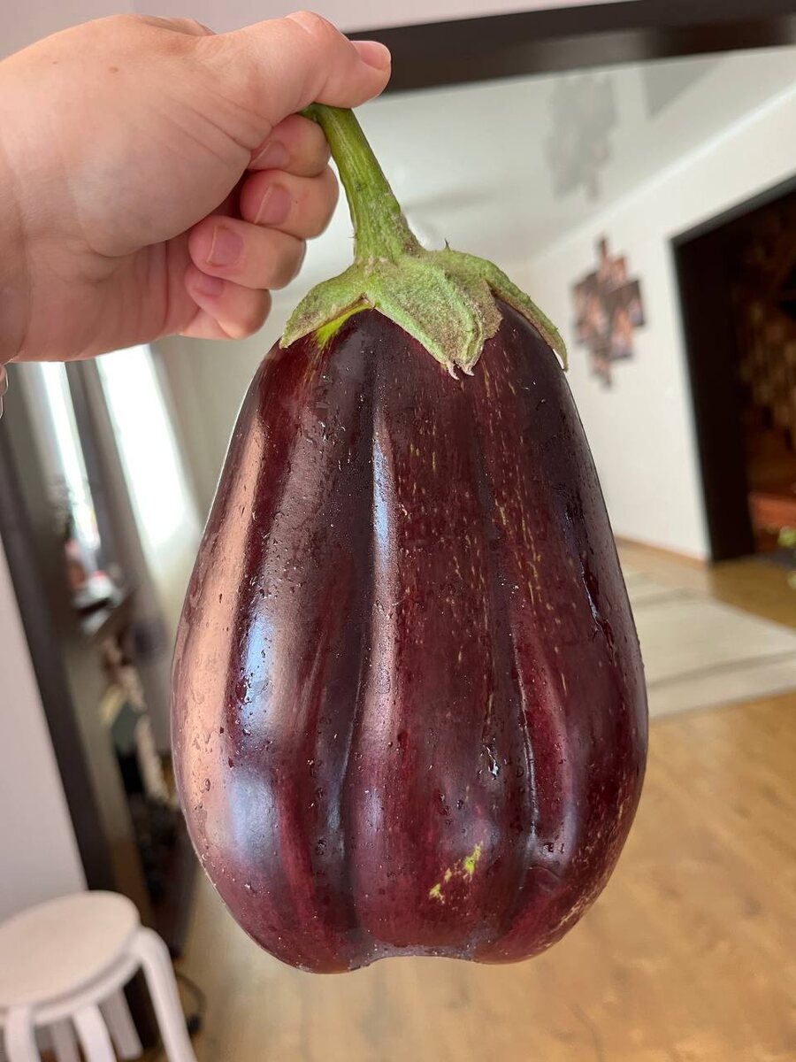 Начинаем собирать урожай)вообще у нас всегда вырастали хорошие баклажаны но в этом году прям баклажанище. Очень любим готовить разные блюда из баклажан.