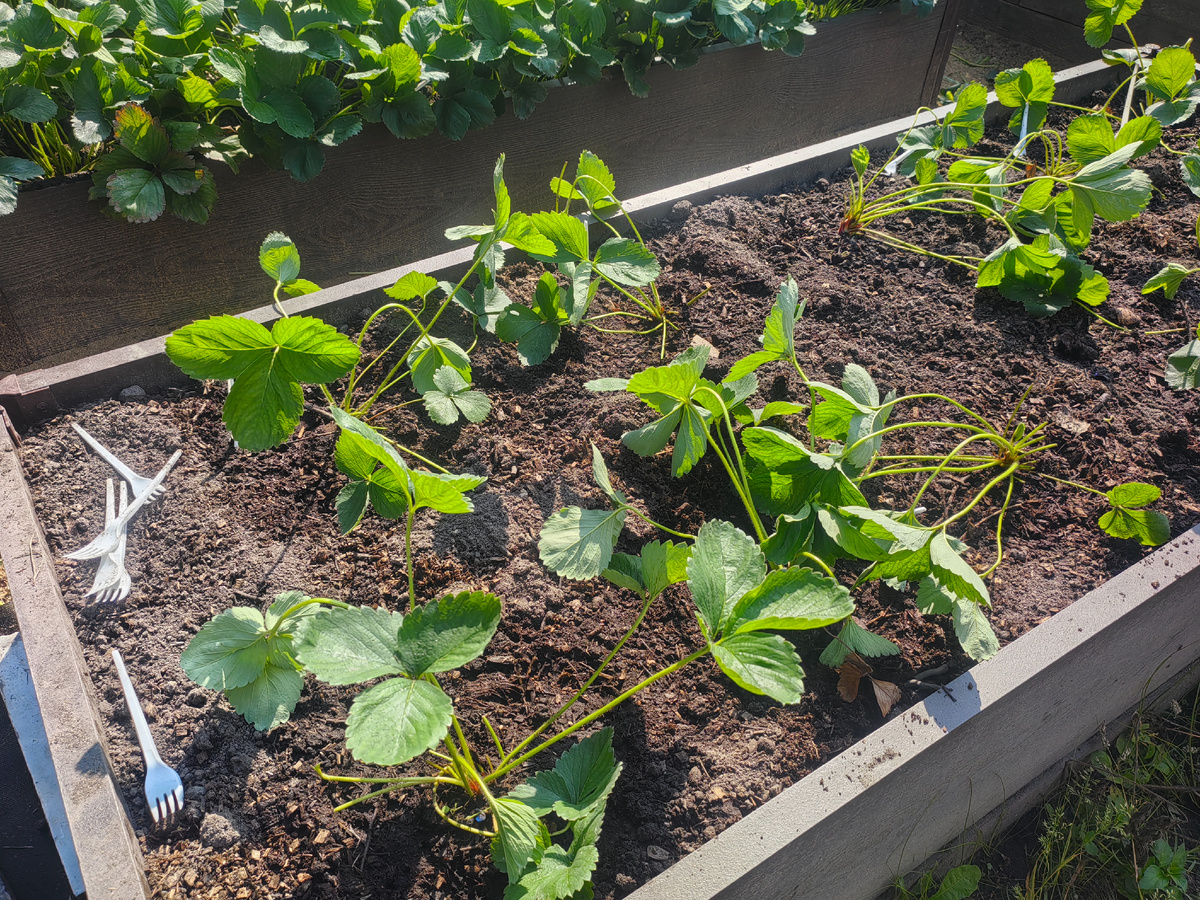 Если у клубники листья встали и не падают днём даже при сухой погоде – она укоренилась. Это прямо чёткий ориентир, что клубника прижилась. Он меня никогда не подводил.
