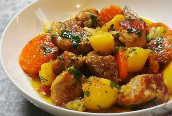В сотейнике растопите нарезанное мелкими кубиками сало.Добавьте к салу мясо, нарезанное небольшими кусочками, и обжарьте до румяной корочки.