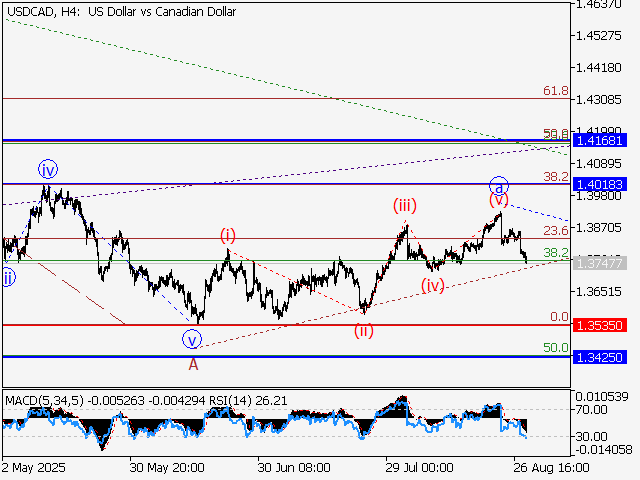 USD/СAD: анализ и прогноз волн Эллиотта на 29.08.25 – 05.09.25