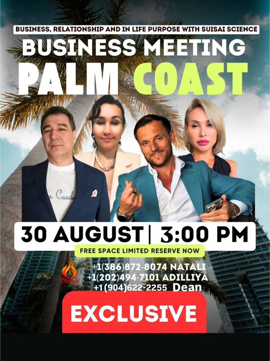☀️Мастер-Класс Сюцай в Palm Coast🌴 📅 Дата: 30 августа 2025 🕡 Время: 2:00 PM 📍 Место: 2500 Palm Coast Pkwy NW Palm Coast, FL 32137 United States Встреча с директором “Syucai Training Institute” Сергеем Теплых. Тема вечера: «Ключи Успеха Бизнеса через науку Сюцай» 📖 Что вас ждёт: • Знания науки Сюцай • Практики для роста бизнеса • Инструменты для личной эффективности • 👥 Для кого: • Предпринимателей • Руководителей • Всех, кто стремится к успеху 📲 Регистрация на МК по телефону +1 386 872 8074 +1 202 494 7101 +1 904 622 2255 присоединяййтесь в чат по ссылке : https://t.me/+Ly1NiCrj_bBhMjZi ✨ Количество мест ограничено! ✨ Запишитесь заранее, чтобы не упустить шанс.