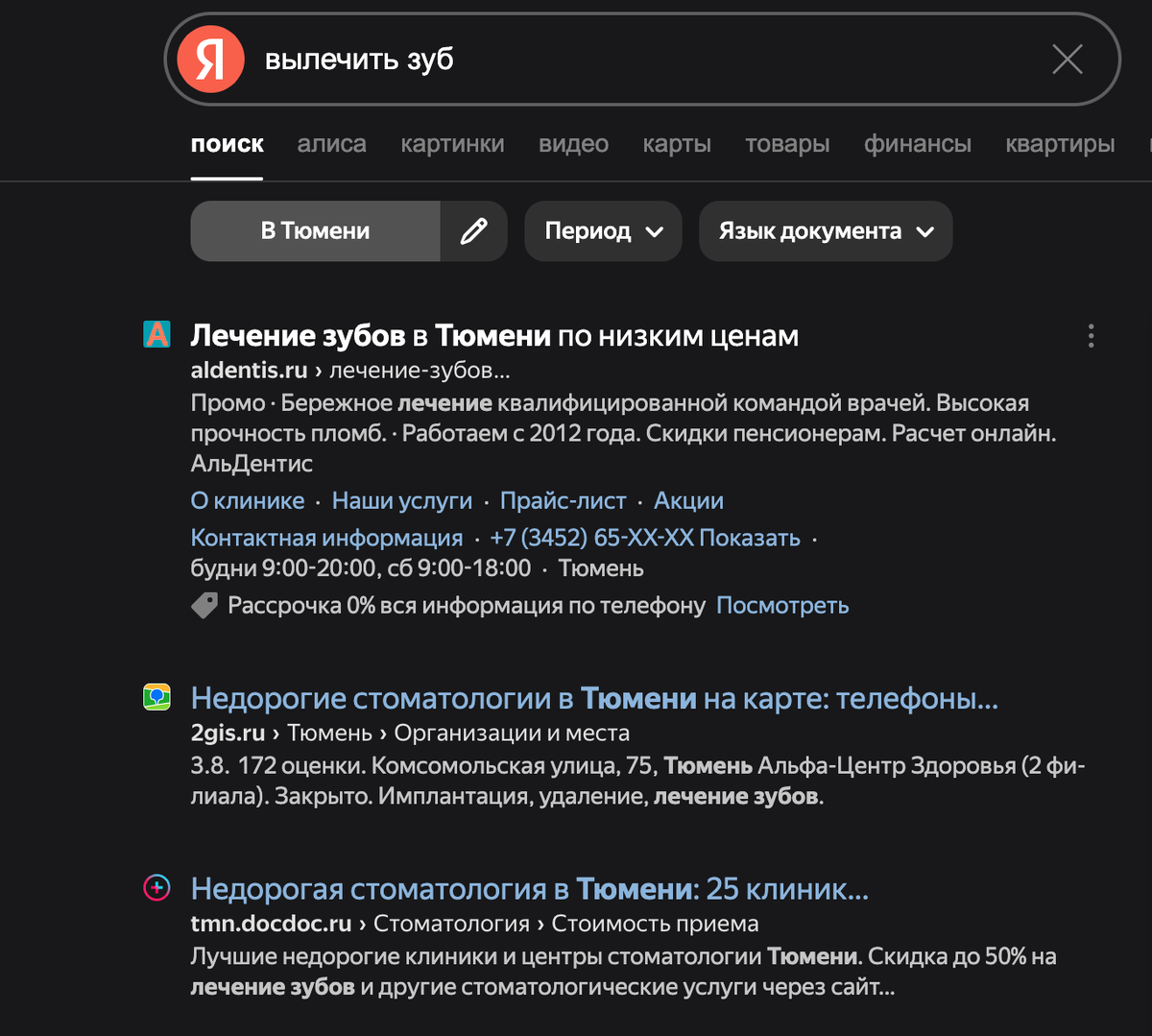 «лечение зубов», «импланты цена», «чистка зубов рядом». 📈 Пример: