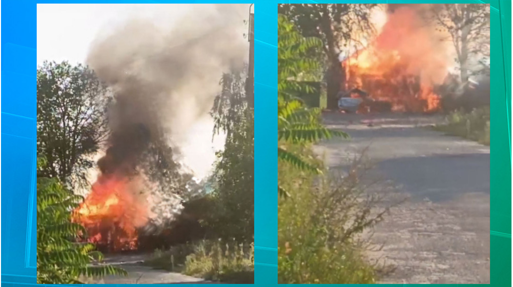 В Сети появилось видео горящих после удара ВСУ в Климовском районе дома и машины