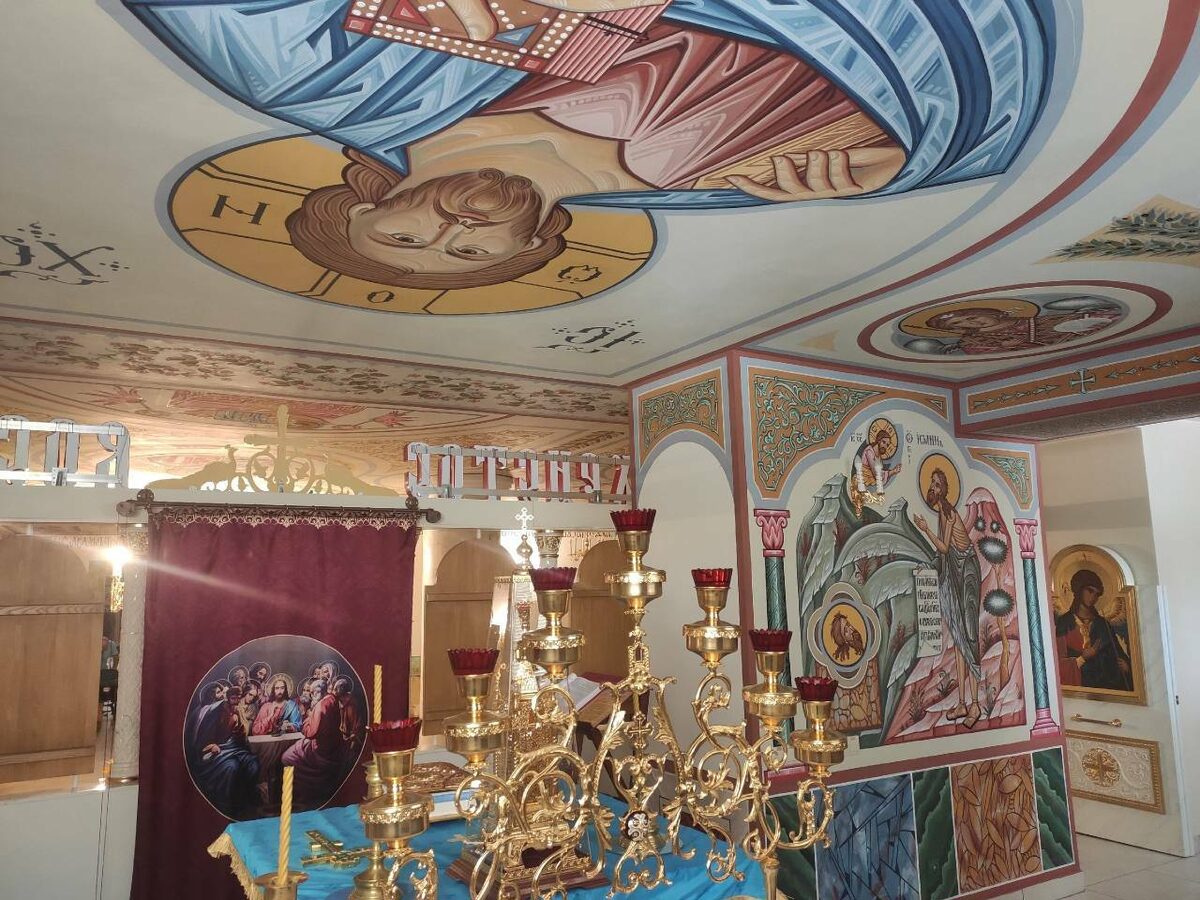 В начале нынешнего года художник приступил к росписи верхнего храма. Начал с подкупольного пространства, затем расписал так называемые барабаны, они являются основанием для куполов. Сейчас ведутся работы по росписи сводов храма. Художник - Николай Шелюто - очень опытный, он обучался своему мастерству в Свято-Троицкой Сергиевой лавре.