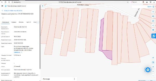 Название: Земельный участок из земель населенных пунктов с кадастровым номером 31:25:1004013:423, расположенного по адресу: Российская