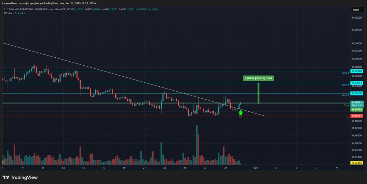 🔼Лонг, спот, в приоритете 2я цель, большая вероятность закрыть в течении суток. Стоп комфортный, либо плавающий с сопровождением🕯