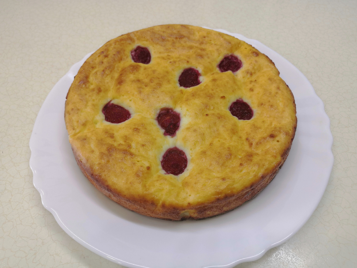 КБЖУ на 100 гр : 135.4/11/6.3/9.8 Ингредиенты: 1. Смешала творог, яйцо, подсластитель, ванилин, разрыхлитель и сметану. Затем добавила крахмал и муку. И снова хорошо перемешала. Можно пробить блендером 2. Выложила массу в силиконовую форму 15 см. Сверху выдавила ягоды. У меня замороженная малина 3. Запекать при 180 гр 30-40 минут, смотрите по своей духовке