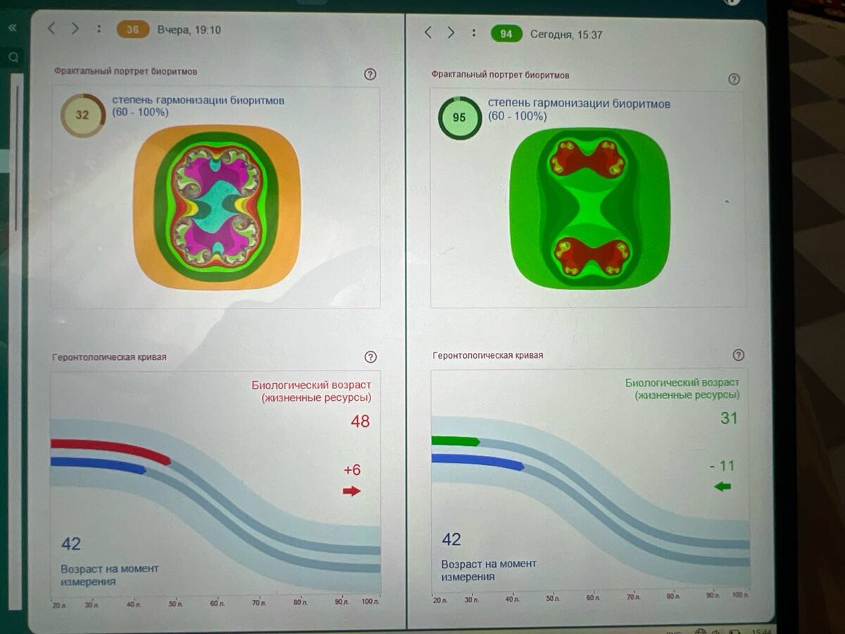 Биологический (функциональный) возраст при паспортном 42. В первый день - 48. Сегодня 31❤️