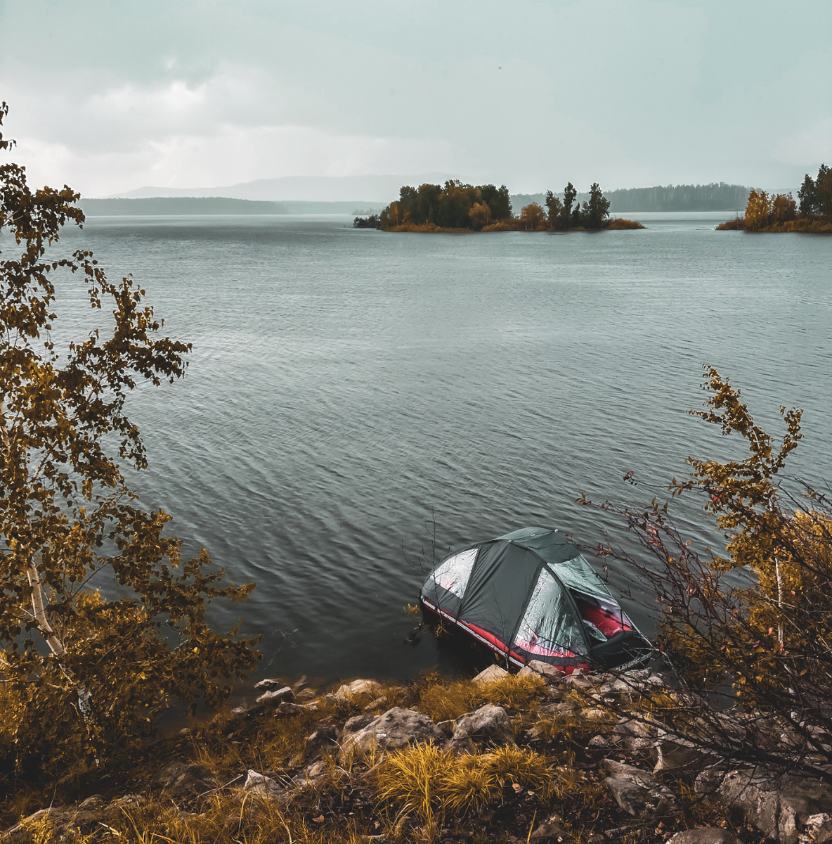 - Долгожданный горячий обед, приготовленный в лодке под тентом и закат, выглянувший из-за туч.