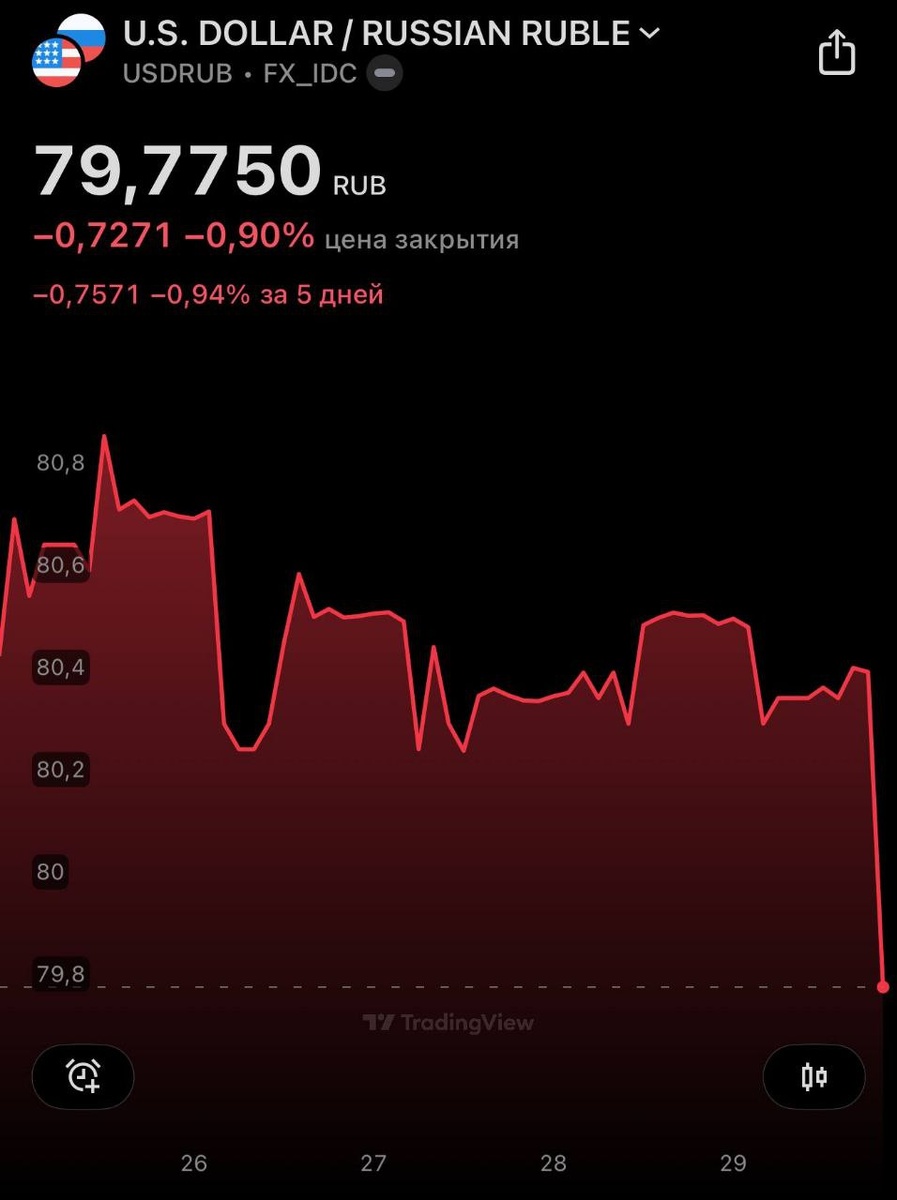 Доллар снова упал ниже 80₽