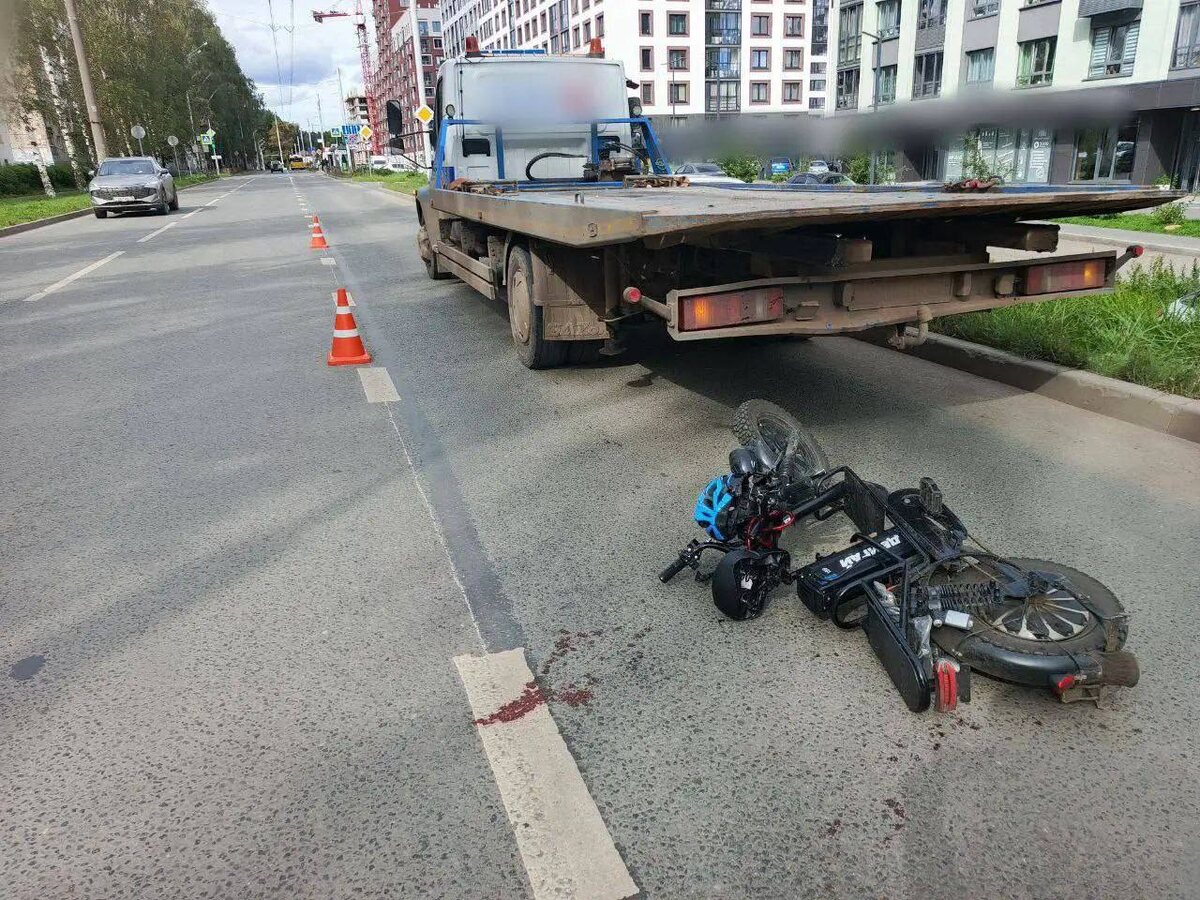 Курьер на электровелосипеде протаранил припаркованный эвакуатор и погиб
