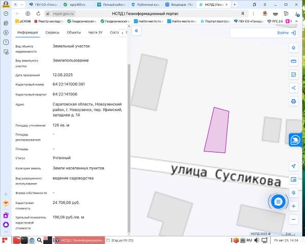 Название: Земельный участок расположенный по адресу: Саратовская область, Новоузенский район, г.Новоузенск, пер.Уфимский, западнее д. 14 Канал: Госземля Саратовская область Область: - Район: - Населенный пункт: - Локация: Смотреть на карте ВРИ: Ведение садоводства Кадастровый номер: 64:22:141006:381 Кадастровая стоимость: 24706.08 Вид сделки: Продажа Площадь: 126 м² Начальная цена: - руб. Дата завершения: 30.09.2025 Подробнее: ГИС ТОРГИ #госземля #земляотгосударства #земля #земельныйучасток #земельныеторги #торги #аукцион #продажаземли #продажа #саратовскаяобласть