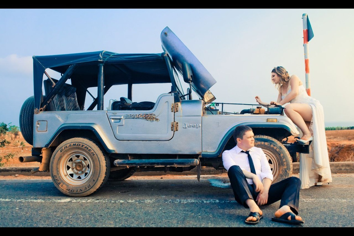 Свадебная фотосессия среди песков Я уже говорила, что свадебные туры мои самые любимые. Бывают официальные свадьбы, чаще берут символическую свадебную церемонию. А ещё есть вариант совсем эконом, но ничуть не хуже. Это когда просто нанимают фотографа, везут с собой свадебные наряды и там на месте организуют сами себе фотосессию. Вот и этим туристам мы нашли фотографа, сделали тур во Вьетнам. А там на месте они с фотографом арендовали джип и поехали фотографироваться по красивым местам. Сам фотограф молодец конечно, он уже знал где красивые локации, запланировал маршрут и предложил молодожёнам. Не учли только, что джип во Вьетнаме ну далеко не первой свежести. Он успешно "закипел" в той части, где золотые пески и кусочек как бы пустыни. Водитель лил воду в радиатор, а наши туристы не расстроились, они сделали фотосессию с этим сломанным джипом. Респект ребятам и уважуха фотографу 🍾💪 вместо паники, они делегировали все водителю и пошли кайфовать. Фото абсолютно реальное, мне лю