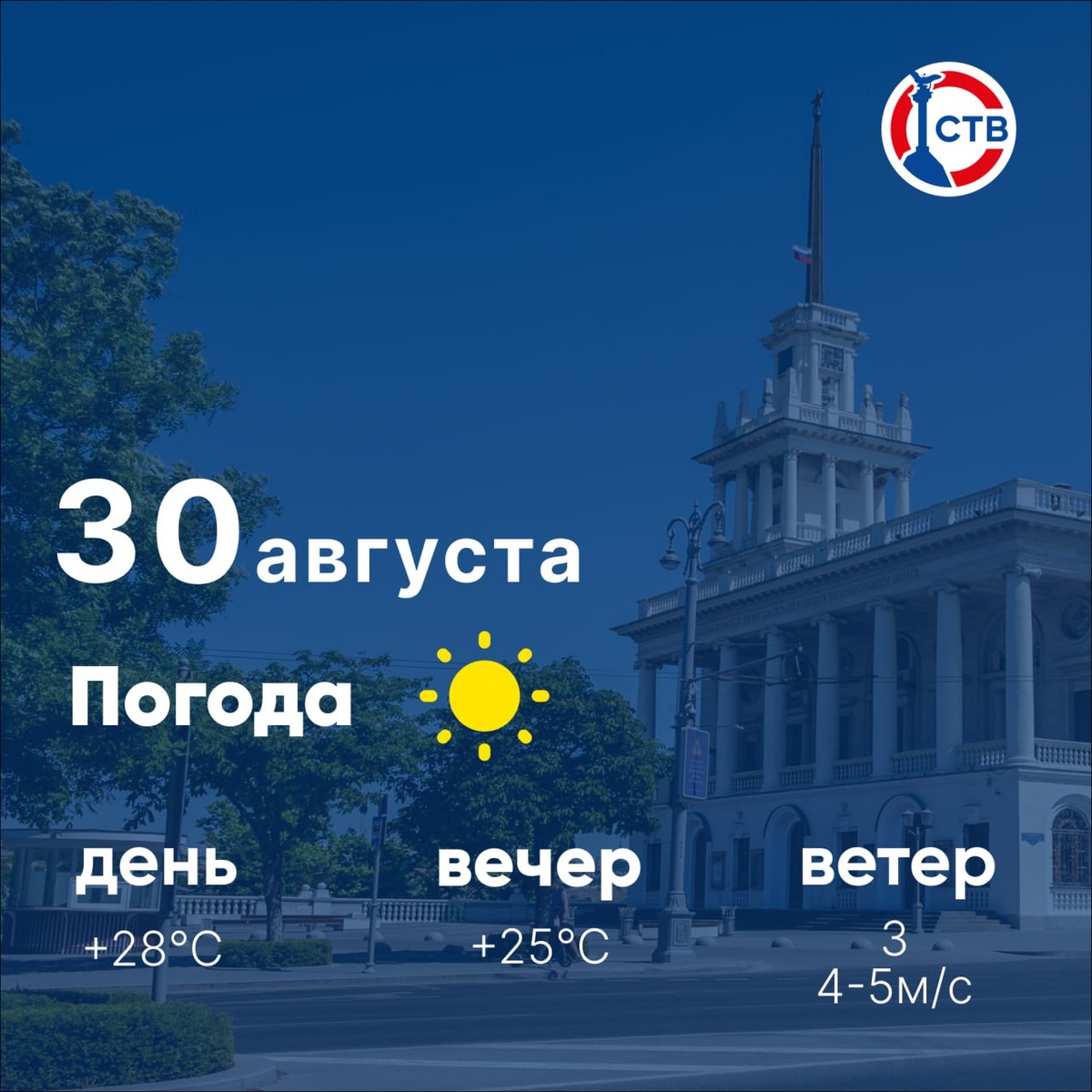 ☀️ Доброе утро, севастопольцы! Вода в море прогрелась до +25°. Наступили последние выходные этого лета — проведите их со всей душой! 📺 Подписывайтесь на СТВ