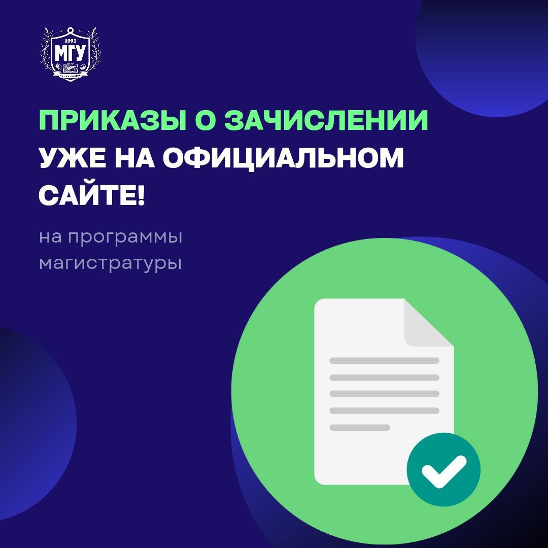 Приказы о зачислении на программы магистратуры (бюджетные места) уже доступны на официальном сайте МГУ имени А.И. Куинджи! Как узнать результаты? 1⃣Зайти на официальный сайт МГУ имени А.И. Куинджи. 2⃣Перейти во вкладку «Абитуриентам» — «Магистратура». 3⃣ В разделе «Актуальная информация о ходе приёмной кампании» выбрать «Приказы о зачислении на места, финансируемые за счет средств из федерального бюджета»: — «Приказ о зачислении на места, финансируемые за счет средств из федерального бюджета, на очную форму обучения» — «Приказ о зачислении на места, финансируемые за счет средств из федерального бюджета, на заочную форму обучения» Мы Готовим Успешных! Контакты приёмной комиссии: 📎Телефон: +7 (949) 723-07-53 📎Email: enrollment@mgumariupol.ru 📎 Адрес: г. Мариуполь, пр. Строителей, 129А Проконсультироваться: ✔️ Telegram-бот по вопросам поступления в вузы России ✔️ Единый контакт-центр: 8-800-301-44-55 #МГУимениКуинджи #приемнаякампания #абитуриент2025 #Магистратура