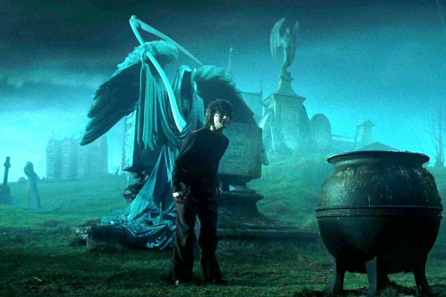 Воздух на кладбище выл от энергии только что совершённого ритуала. Молодой, сильный и полный ненависти Волан-де-Морт поднял палочку, его алое змеиное око сверкнуло торжеством. Целая толпа Пожирателей Смерти замкнула кольцо вокруг Гарри и бездыханного тела Седрика.