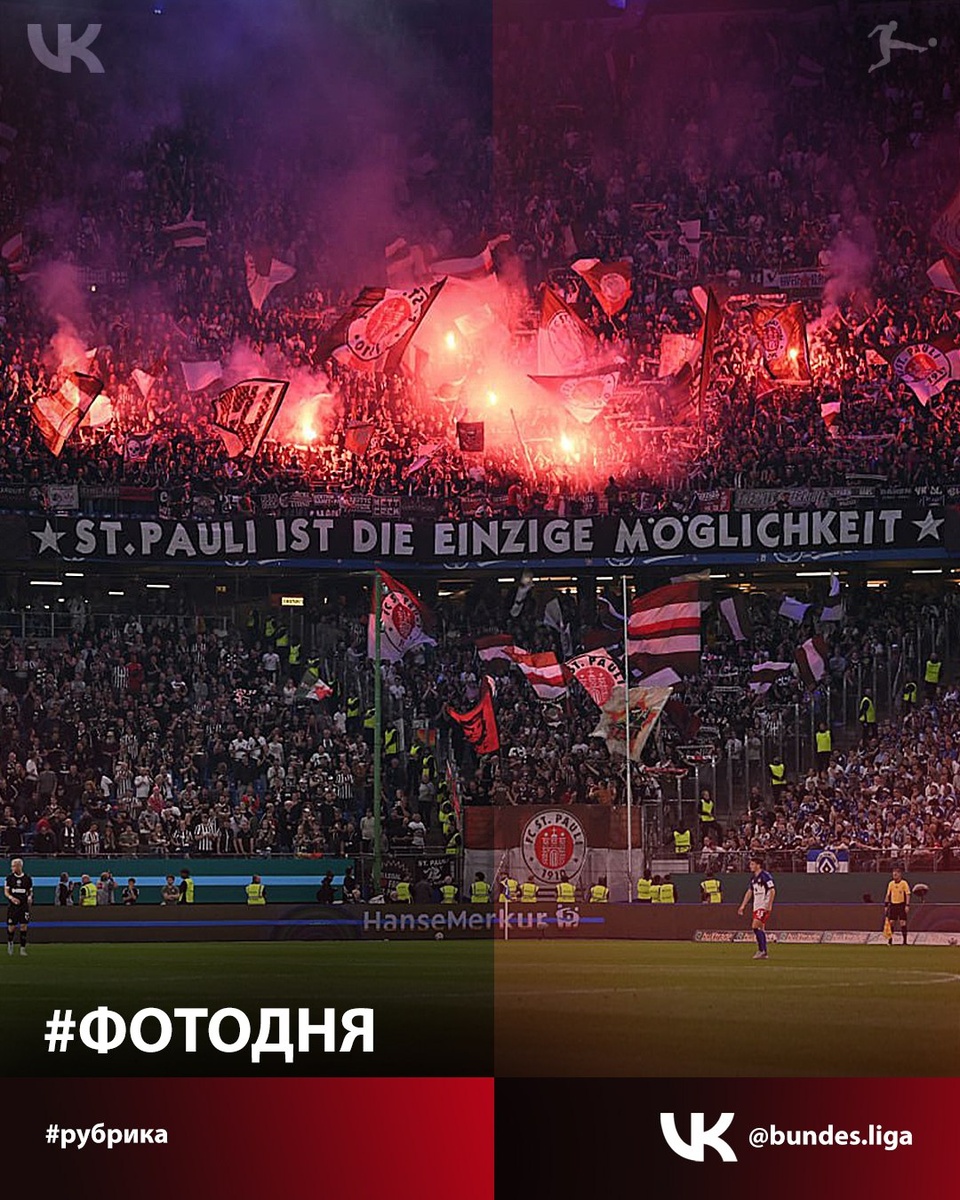 #ФотоДня 📸 Фанаты «Санкт-Паули» в матче с «Гамбургом» сделали всё, чтобы поддержать любимую команду. Футболисты ответили уверенной победой 👏 Голы за два тура: «Санкт-Паули» - 5 ⚽⚽⚽⚽⚽ «Гамбург» - 0 🚫 Набранные очки: «Санкт-Паули» - 4 «Гамбург» - 1 Следующий матч в Бундеслиге: «Санкт-Паули» 🆚 «Аугсбург» (14 сентября) «Бавария» 🆚 «Гамбург» (13 сентября)