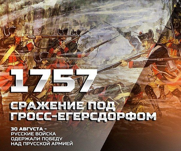 В этот день 30 августа 1757 года произошла битва при Гросс-Егерсдорфе. Первая битва России в Семилетней войне, первая битва русской и прусской армий. Семилетняя война Россия не была зачинщицей Семилетней войны. Тяжелое, изматывающее сражение великих держав, от берегов Северной Америки, до Европы и даже Индии. Ввязываться в это предприятие у императрицы Елизаветы Петровны не было никакого желания. Однако аппетиты прусского кроля Фридриха Великого распространились уже слишком широко, и могла пасть Вена, столица Австрии, русской союзницы. Тогда-то государыня Елизавета и приняла решение урезонить главного возмутителя спокойствия Европы. Летом 1757 года русская армия впервые за долгое время должна была сразиться с западноевропейской. Каковы ее истинные качества никто толком не понимал. У Фридриха Прусского было много генералов и офицеров, что когда-то были на русской службе. Они обычно оценивали русского солдата невысоко. И Пруссия выделила на свой восточный фронт весьма скромные силы. У