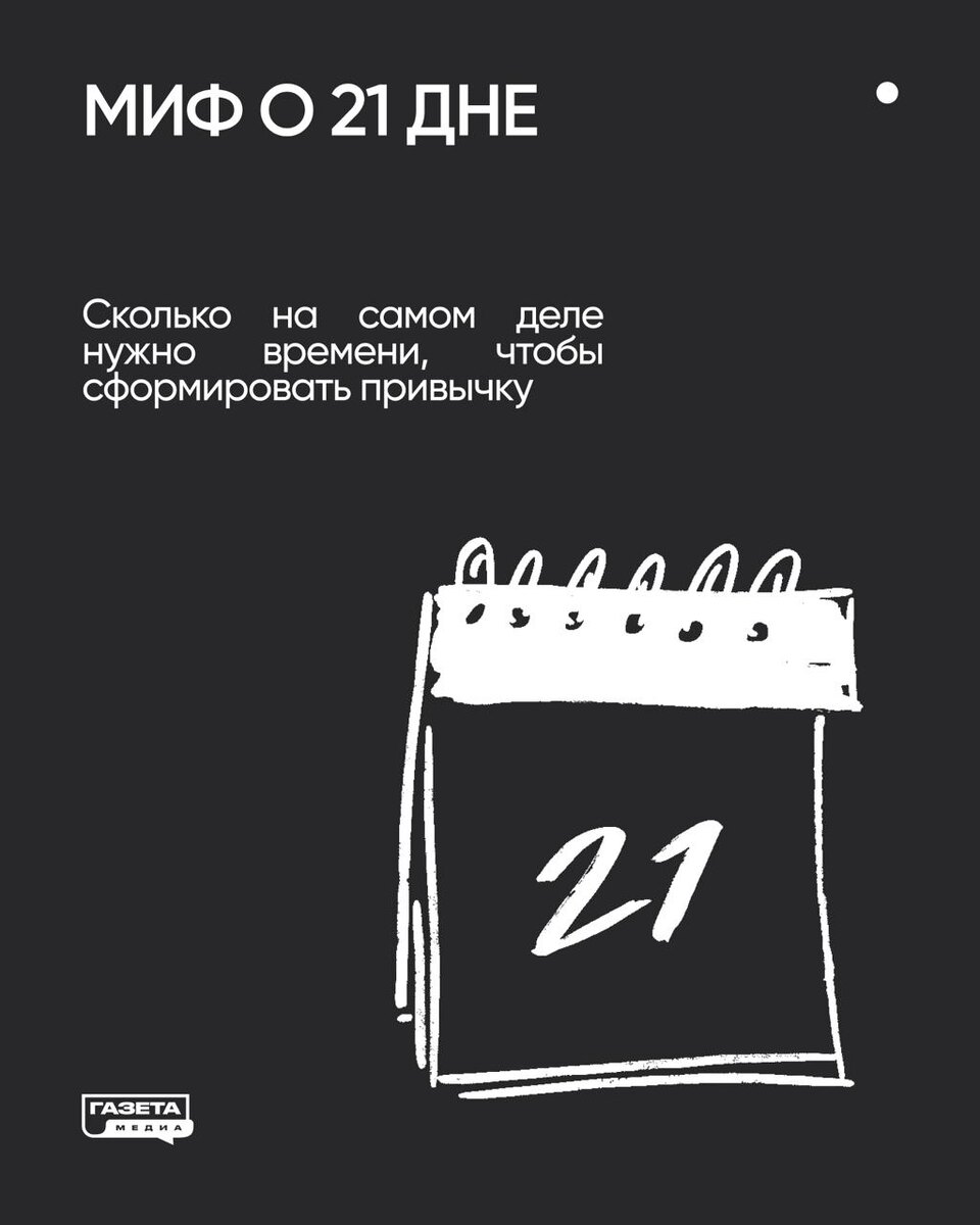 Привычки формируются дольше, чем мы привыкли думать Многие уверены, что достаточно повторять действие 21 день — и вот оно уже стало привычкой. Этот миф популяризировал пластический хирург Максвелл Мальц в 1960-х, заметив, что пациенты адаптируются к новому облику за три недели. Но наука говорит: реальность сложнее. Метаанализ 2023 года объединил данные 20 исследований с 2 600 участниками и показал следующие результаты: • Среднее время формирования привычки — от 59 до 154 дней, в зависимости от типа поведения. • Индивидуальный разброс огромен: от 4 до 335 дней. • Простые действия, такие как пить воду, «прилипают» быстрее, чем сложные, например, регулярные тренировки. Почему же 21 дня недостаточно: • Автоматичность ≠ регулярность. Привычка — это когда действие выполняется почти без усилий, но переход к автоматизму требует сотен повторений в стабильном контексте. • Зависит от типа привычки: чистка зубной нитью становилась привычкой за четыре недели, а здоровое питание — гораздо дол