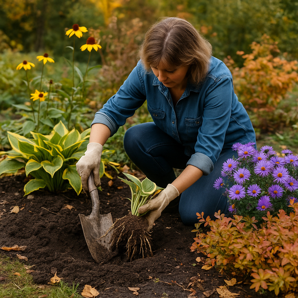 Сентябрь для меня — лучший месяц, чтобы «подправить» цветники: почва ещё тёплая, дожди помогают укоренению, а жара уже не мучает. Я заранее составляю список многолетников, которые можно смело делить и переносить сейчас, готовлю инструмент и работаю «по ленте» — от куста к кусту. Делюсь своим чек-листом и схемами посадки, чтобы клумба следующей весной зацвела как новенькая. • Хоста. Любит тёплую землю и равномерную влажность осенью; делю как минимум на 2–3 «вилки» с корнями.