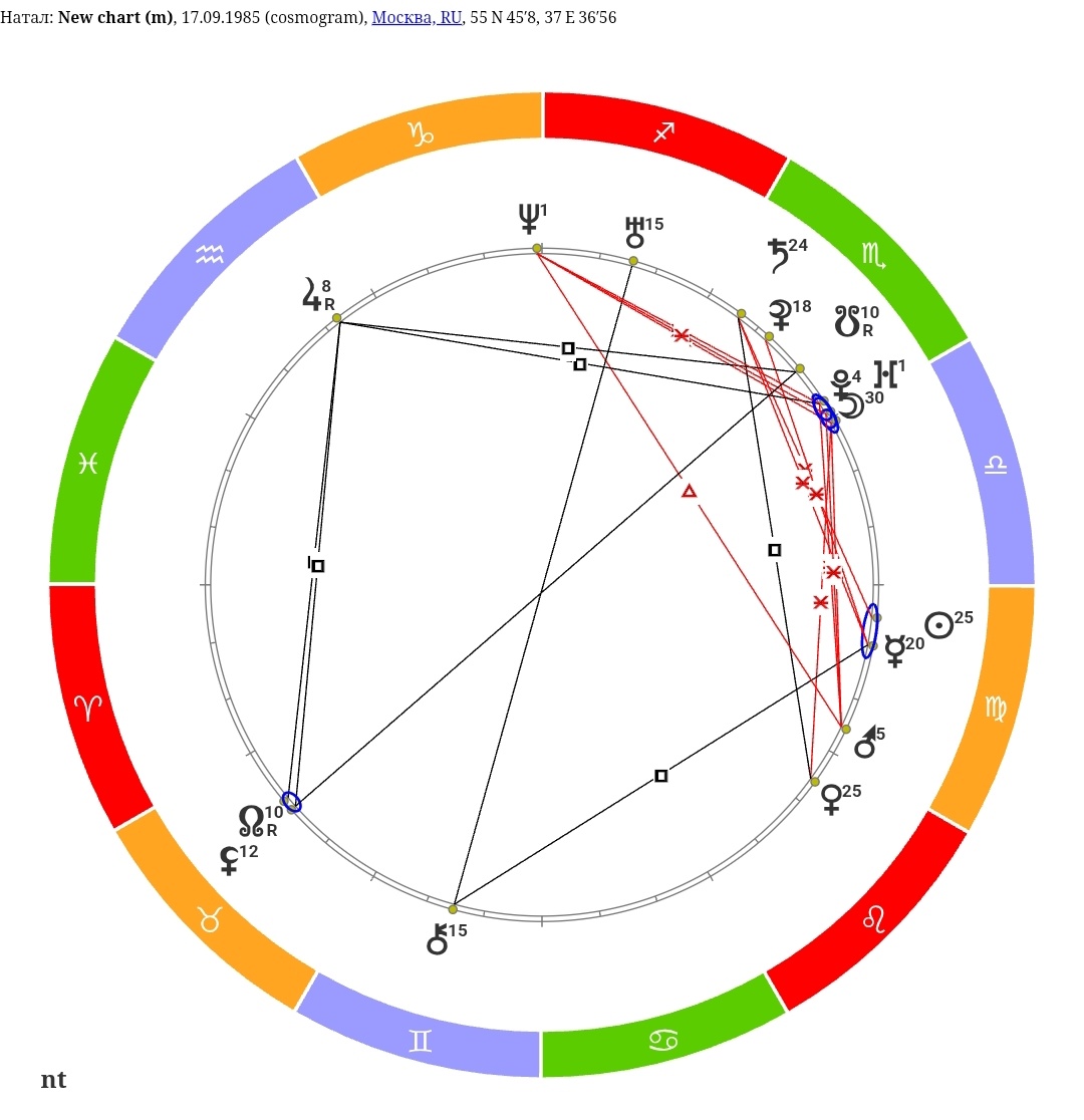 Марс входит в замкнутую конфигурацию бисекстиля с Нептуном и выходом в знак Скорпиона на стеллиум Луна+Плутон+Прозерпина, что наделяет сильным духом лидерства и желанием главенствовать над всем миром. Александр не знает страха и любит риск. Готов рискнуть многим ради того, что он начал и для завершения задуманного.