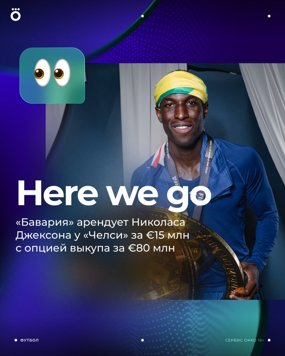 ⚽ Джексон едет в «Баварию». Николас едет в аренду с возможностью выкупа за €80 млн.