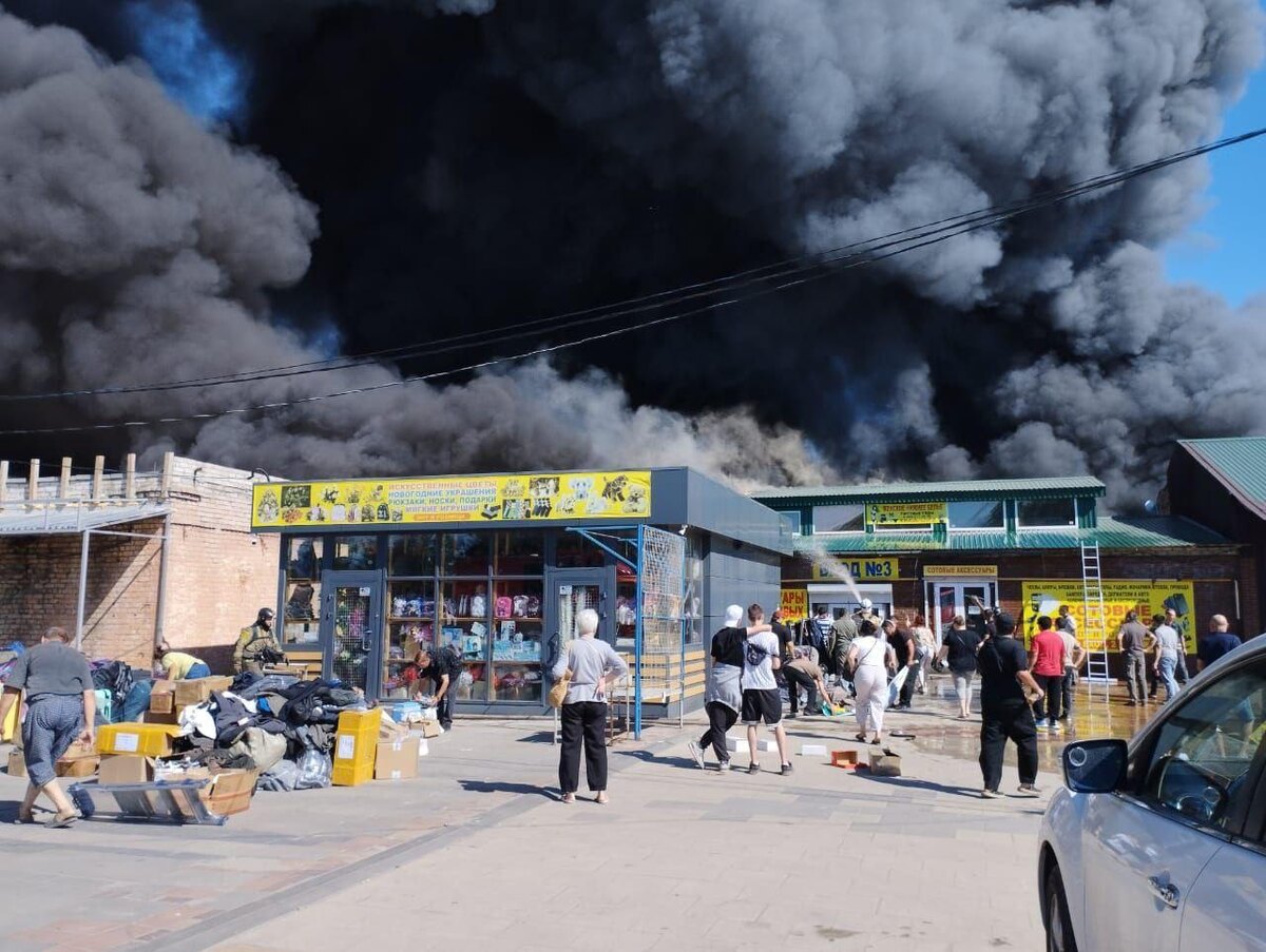 В ответ на пост До трех тысяч «квадратов» увеличилась лощадь пожара на рынке в Волгограде. Тушение осложняют плотная застройка и высокая пожарная нагрузка, сообщили в МЧС. UPD: По данным МЧС, можар локализован, эвакуированы 600 человек. ⭕️ Подписаться | Мы в MAX | Буст